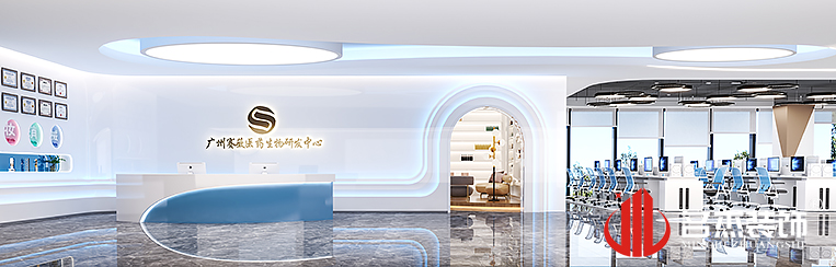 在整個的辦公室裝修設計當中,運用流行的霧霾藍作為整個空間的色調基準,同時還加入各種不規則的圖形,這個在門頭處也能體現出,這些圖形的加入也能讓整個空間變得更加有設計感。點綴空間的同時,還能讓空間更加有層次感。大量的燈光引入,也使得產品展示變得更加有吸引力。